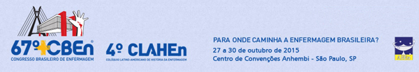 O Congresso Brasileiro de Enfermagem, em sua 67º versão – 67º CBEn, ocorrerá concomitante com o 4º Colóquio Latino-Americano de História de Enfermagem (CLAHEn) na cidade de São Paulo (SP), entre 27 e 30 de outubro de 2015, no Centro de Convenções Anhembi.